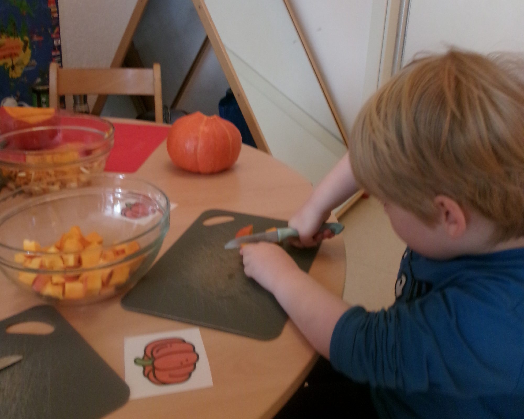 Am Montag verwandelte sich unser Flur in eine kleine Kochwerkstatt: Eine Kollegin setzte sich mit den Kindern zusammen, und alle, die wollten, durften fleißig Gemüse schneiden und in den großen Topf geben. Mit viel Geschick und Freude haben die Kinder Hand angelegt – und alle haben geholfen beim Schälen, Schneiden und Entkernen.