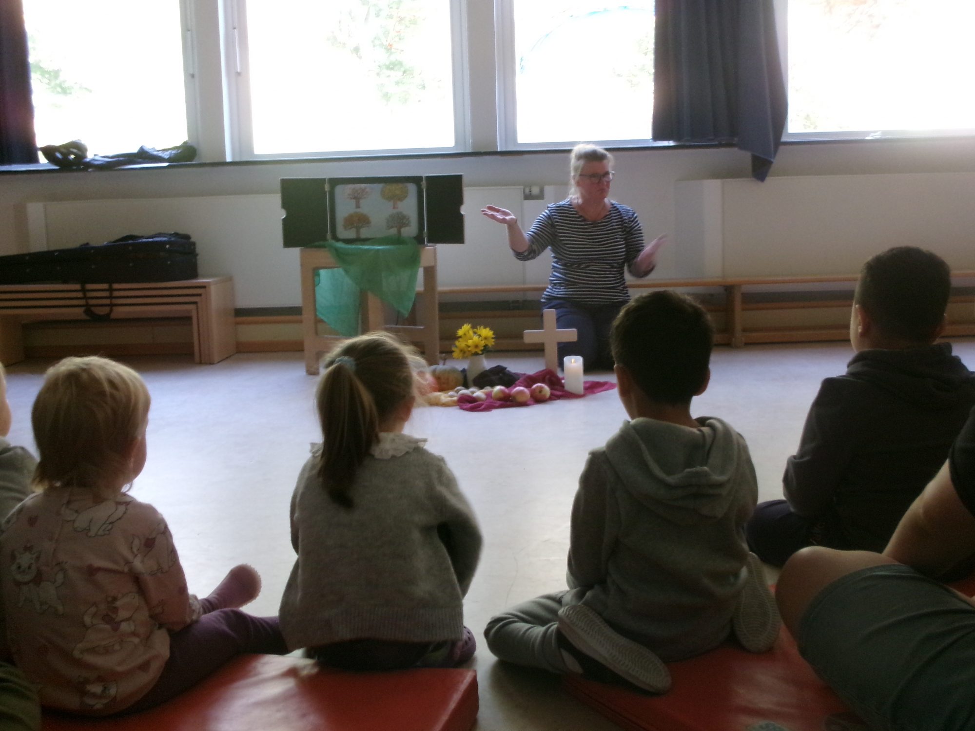 Begleitet wurde die Andacht von fröhlichem Gesang, unter anderem mit dem Lied „Gott mag Kinder, große und kleine“. Zum Abschluss erhielten alle den Segensspruch: