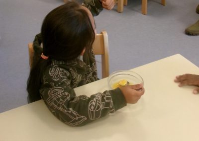 Zum Abschluss genossen die Kinder in ihren Gruppen die selbstgemachte Kürbissuppe. Besonders stolz waren sie darauf, dass sie beim Zubereiten selbst mithelfen durften – dadurch schmeckte es noch viel besser.