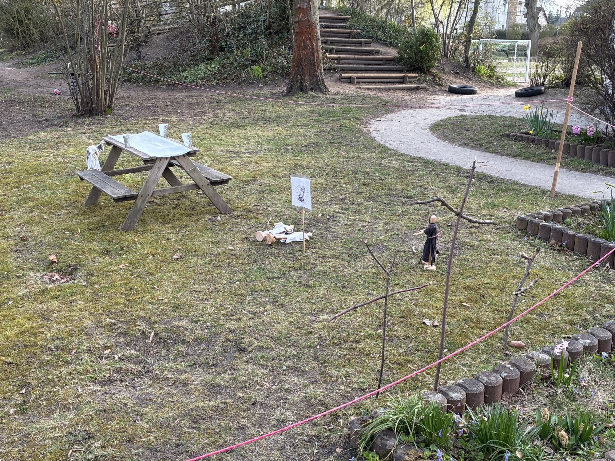 Den Abschluss bildete der Besuch des Ostergartens, in dem alle Gruppen zusammenkamen. Hier konnten die Kinder noch einmal in die Geschichte eintauchen, die Szenen nacherleben und gemeinsam reflektieren. Dieser kreative und abwechslungsreiche Zugang zur Ostergeschichte fördert nicht nur das Verständnis, sondern auch die Freude am gemeinsamen Entdecken und Erzählen.
