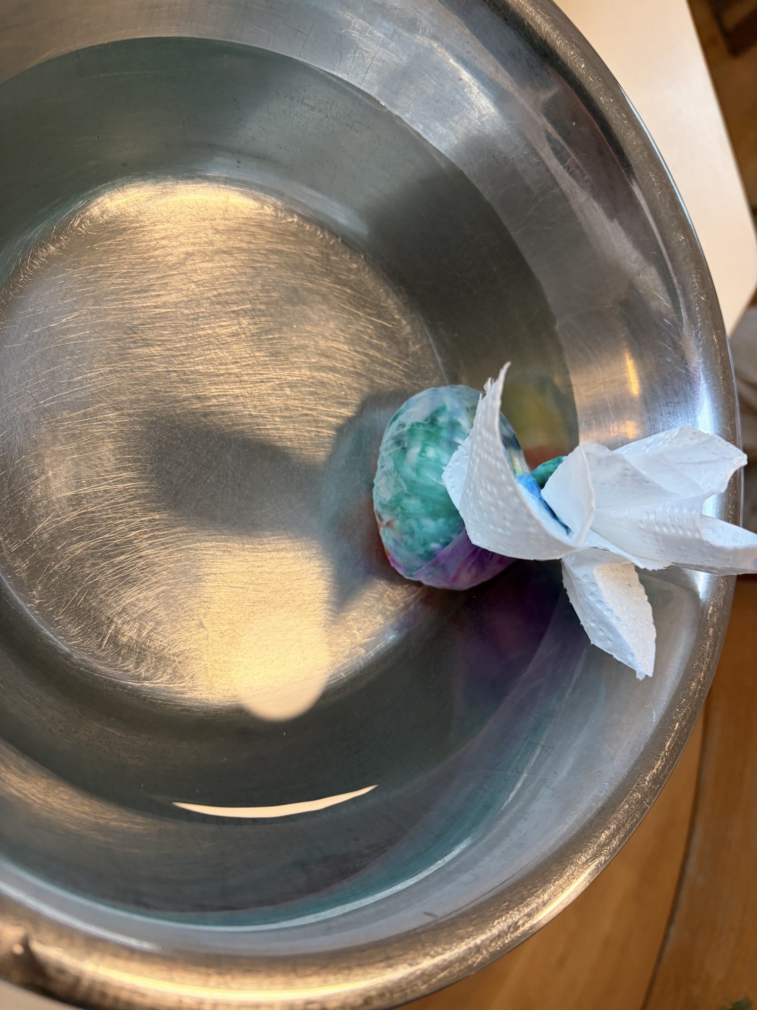 Heute haben die Kinder der Dragonfly Gruppe einen Brief vom Osterhasen erhalten – er benötigt dringend unsere Hilfe beim Eierfärben! Natürlich haben wir sofort losgelegt. Zuerst haben wir Küchenpapier bunt angemalt, anschließend die Eier darin eingewickelt und alles in Wasser mit etwas Essig für etwa 10 Minuten ziehen lassen. Nach einer kurzen Trockenzeit hatten wir wunderschön bunte Eier. Das hat allen Kindern richtig viel Spaß gemacht! Der Osterhase wird die Eier bald wieder abholen, um sie zu verteilen.