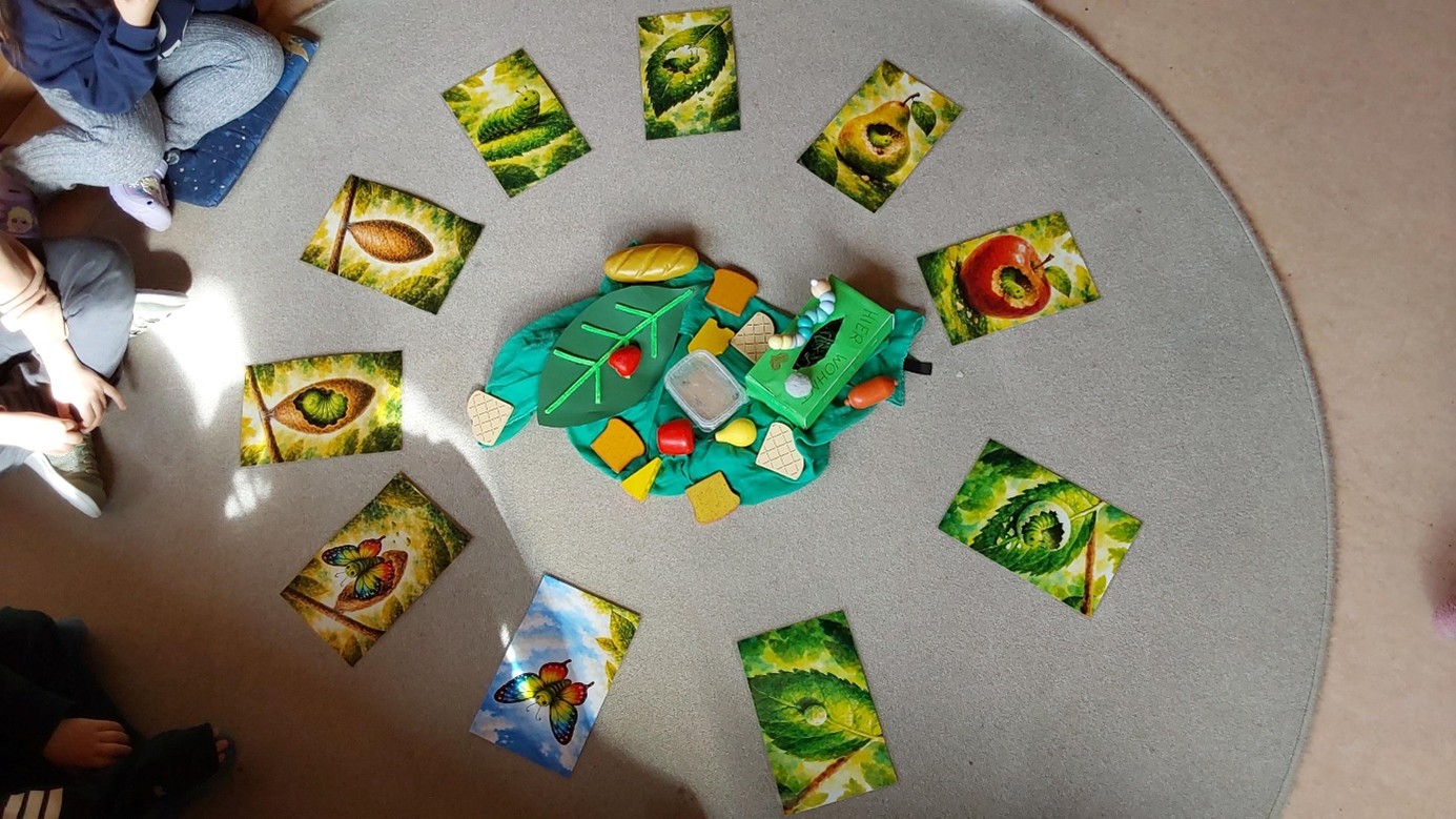 Im Rahmen unseres Projektes „Wie entstehen Schmetterlinge?“ haben sich die Kinder gemeinsam auf Entdeckungsreise begeben. Sie überlegten, was eigentlich aus einem Ei schlüpft und was eine Raupe braucht, um sich zu verwandeln. Dabei wurden viele Ideen gesammelt und die Kinder lernten spielerisch die einzelnen Entwicklungsstufen kennen – von der Raupe über die Verpuppung bis hin zum fertigen Schmetterling.