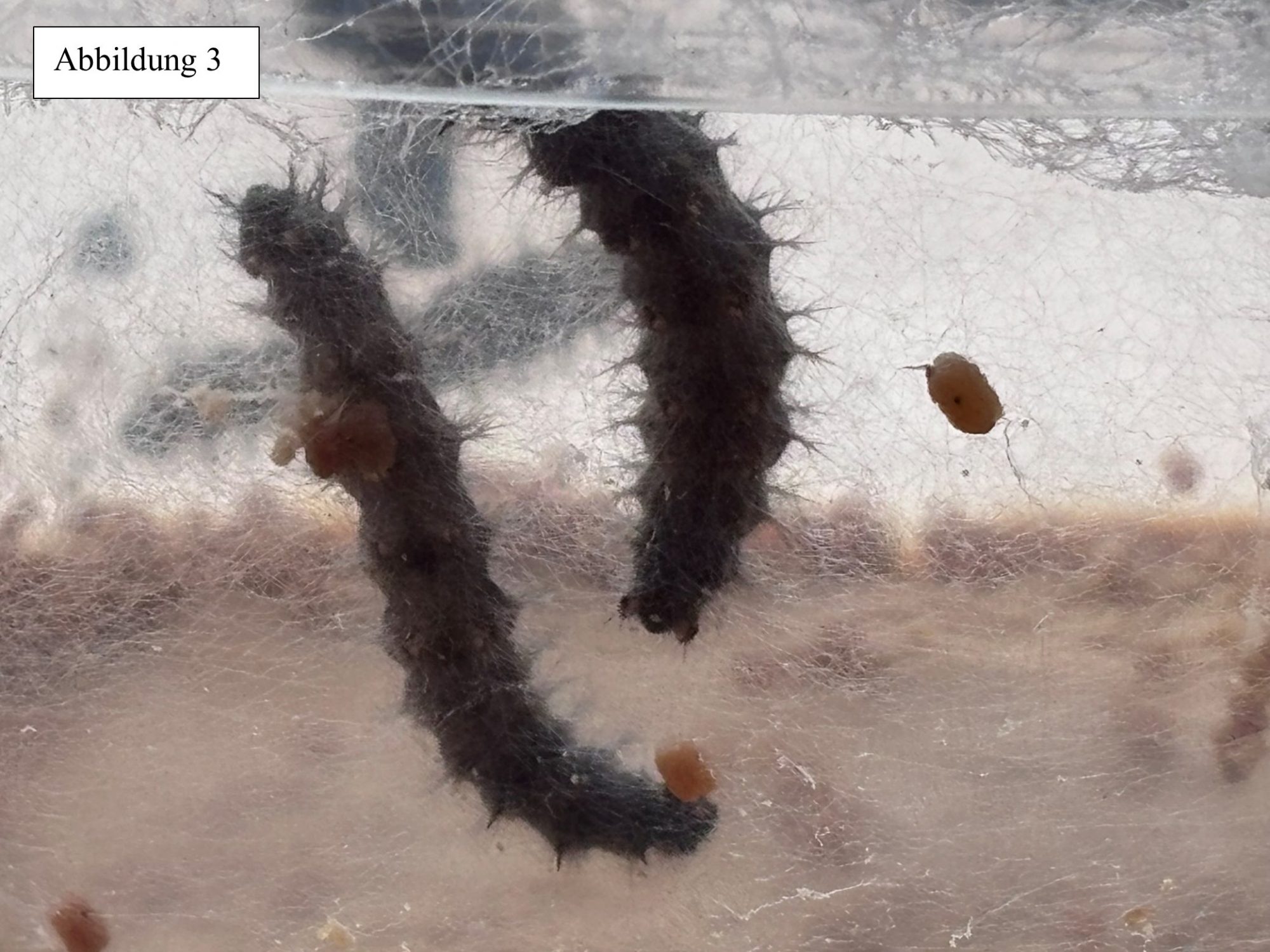 Da die Raupen noch nicht vom Deckel herunterhängen aber schon wirklich groß sind, vermuten wir, dass sich die Raupen in kürze verpuppen werden. Zusammen haben wir uns noch einmal die Stadien der Raupen angeschaut und festgestellt, dass es bald so weit ist.